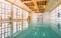 Po levé straně najdete pánskou a dámskou šatnu, přes kterou se vchází k velkému bazénu. Po pravé straně opět dvě šatny a saunový svět s finskou saunou, párou a relaxační zónou, kde můžete odpočívat na lehátkách nebo si dopřát nápoj. Ručníky a prostěradla jsou zdarma k dispozici přímo ve wellness. Pravidelně se tu konají také sportovní aktivity jako je aqua aerobic, yoga, fit ball či pilates.